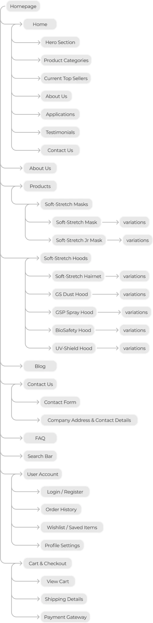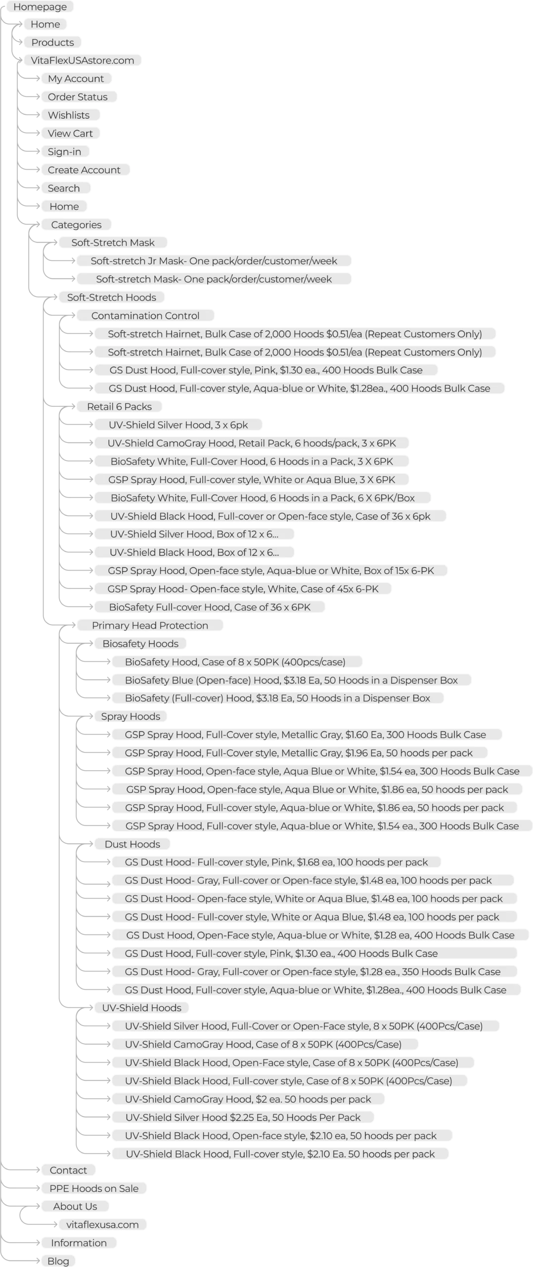 To create an intuitive and efficient navigation structure for the Vitaflex website, I conducted a thorough analysis based on industry best practices, competitor benchmarking, and a heuristic evaluation of the existing site. These insights informed the revised information architecture to enhance usability and align with business goals.