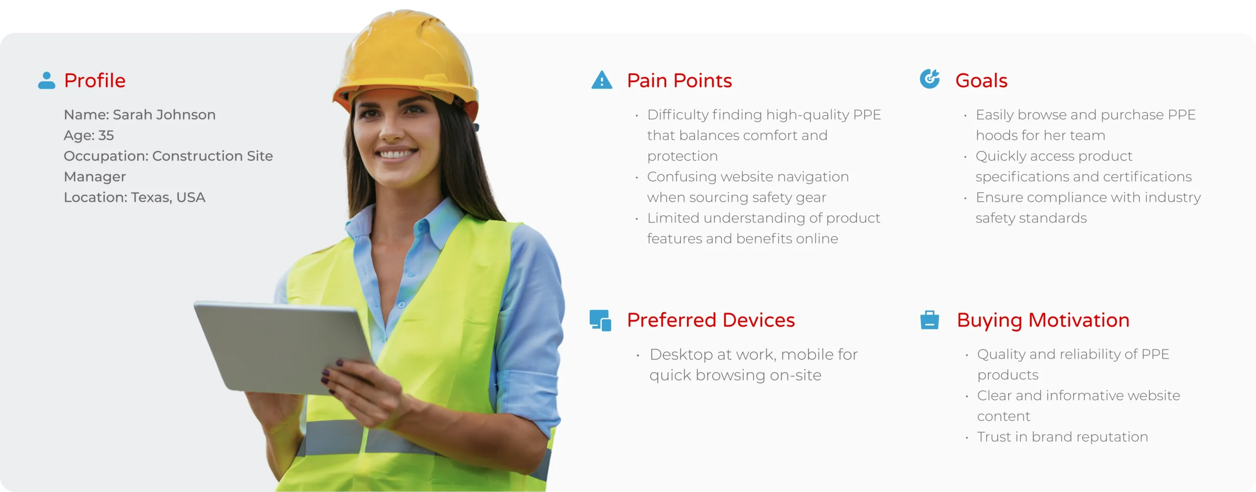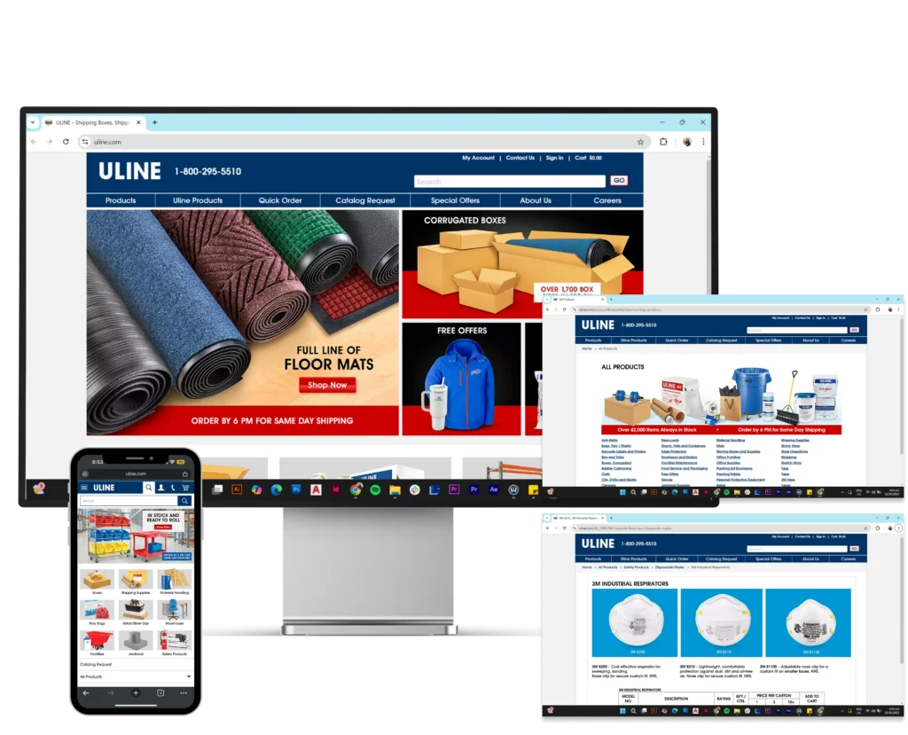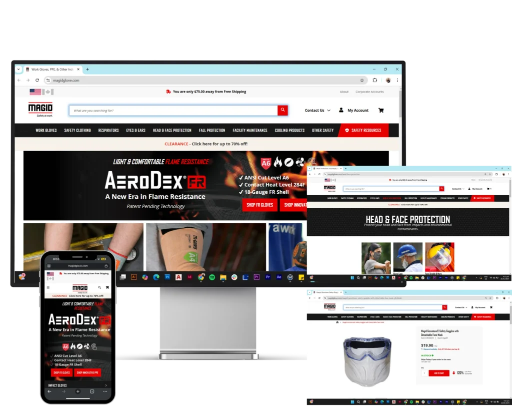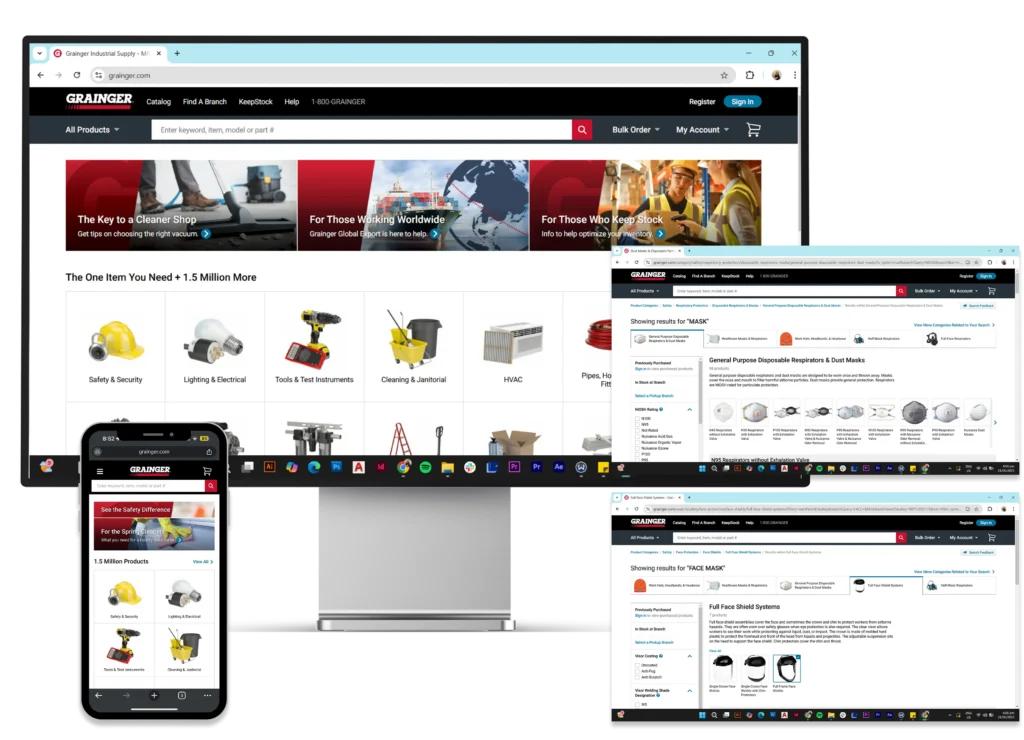 To ensure the redesigned VitaFlex website meets industry standards and user expectations, I conducted a thorough analysis of leading PPE e-commerce websites in the construction industry.